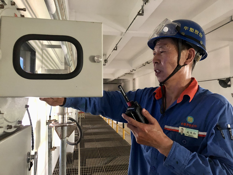 “劉師傅給我最大的印象就是對(duì)待工作的認(rèn)真勁,他每天都是把工作做細(xì)、做完整才下班。2012年到現(xiàn)在,十年如一日!”華塑股份能工巧匠趙聯(lián)波和筆者說。走進(jìn)燒堿車間合成工序,劉文和正在巡檢,一手拎著扳手,確認(rèn)每道卡口和螺栓;一手握著報(bào)警儀,保持警惕,發(fā)現(xiàn)異常立即采取措施。“華塑對(duì)設(shè)備安全管理的嚴(yán)和規(guī)范,總會(huì)讓我有種重回軍營的熟悉感,在這樣的企業(yè)工作很有安全感?!辈筷?duì)的專業(yè)訓(xùn)練造就了他工作的執(zhí)著和嚴(yán)謹(jǐn),無論是日常巡檢,還是停車后的設(shè)備檢修、開車前的排查管線、或是是后期設(shè)備的改造,只要是他負(fù)責(zé)的項(xiàng)目,他總會(huì)把工作當(dāng)作初次接手一樣去干,監(jiān)督、檢查、驗(yàn)證……確保系統(tǒng)運(yùn)行安全穩(wěn)定。
