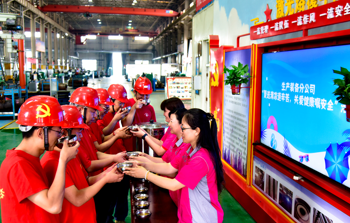 生產(chǎn)裝備分公司為車間職工送上清涼解暑的綠豆茶,助力安全生產(chǎn)(趙德強(qiáng) 攝)