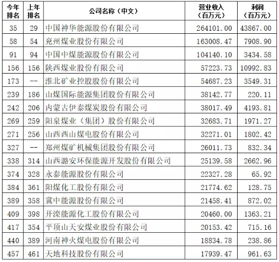 2019中國500強排行榜發布!煤炭行業18家公司上榜!